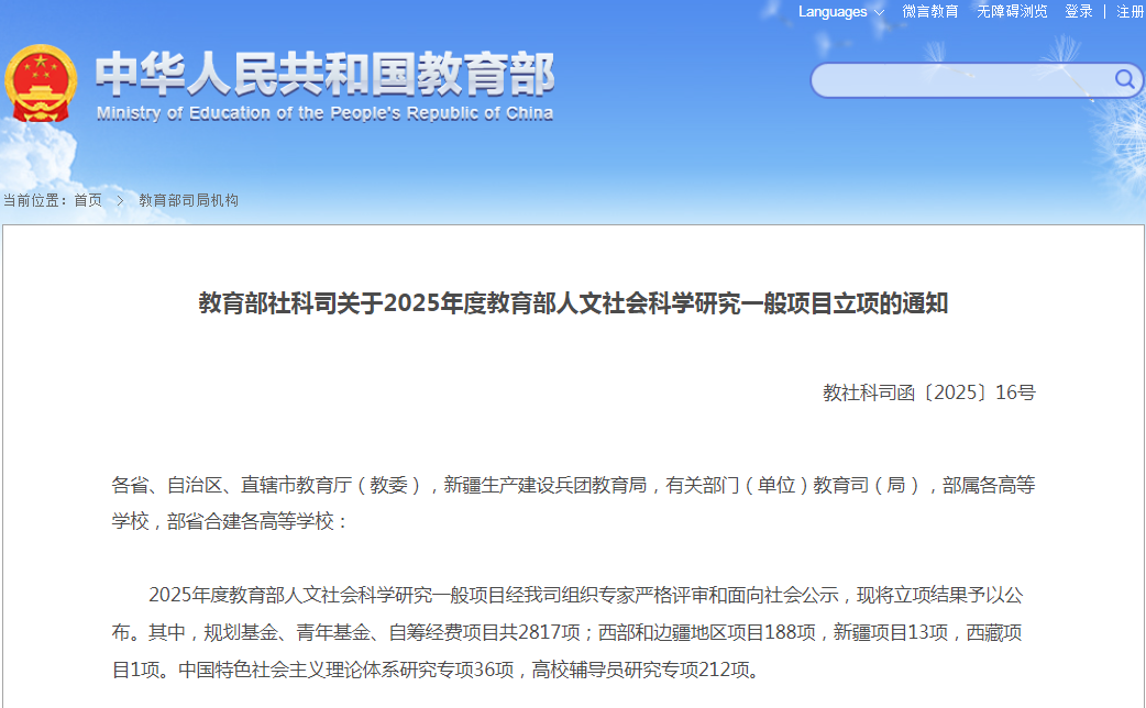 近日,教育部社科司发布了2025年度教育部人文社会科学研究一般项目立项的通知。道具自慰