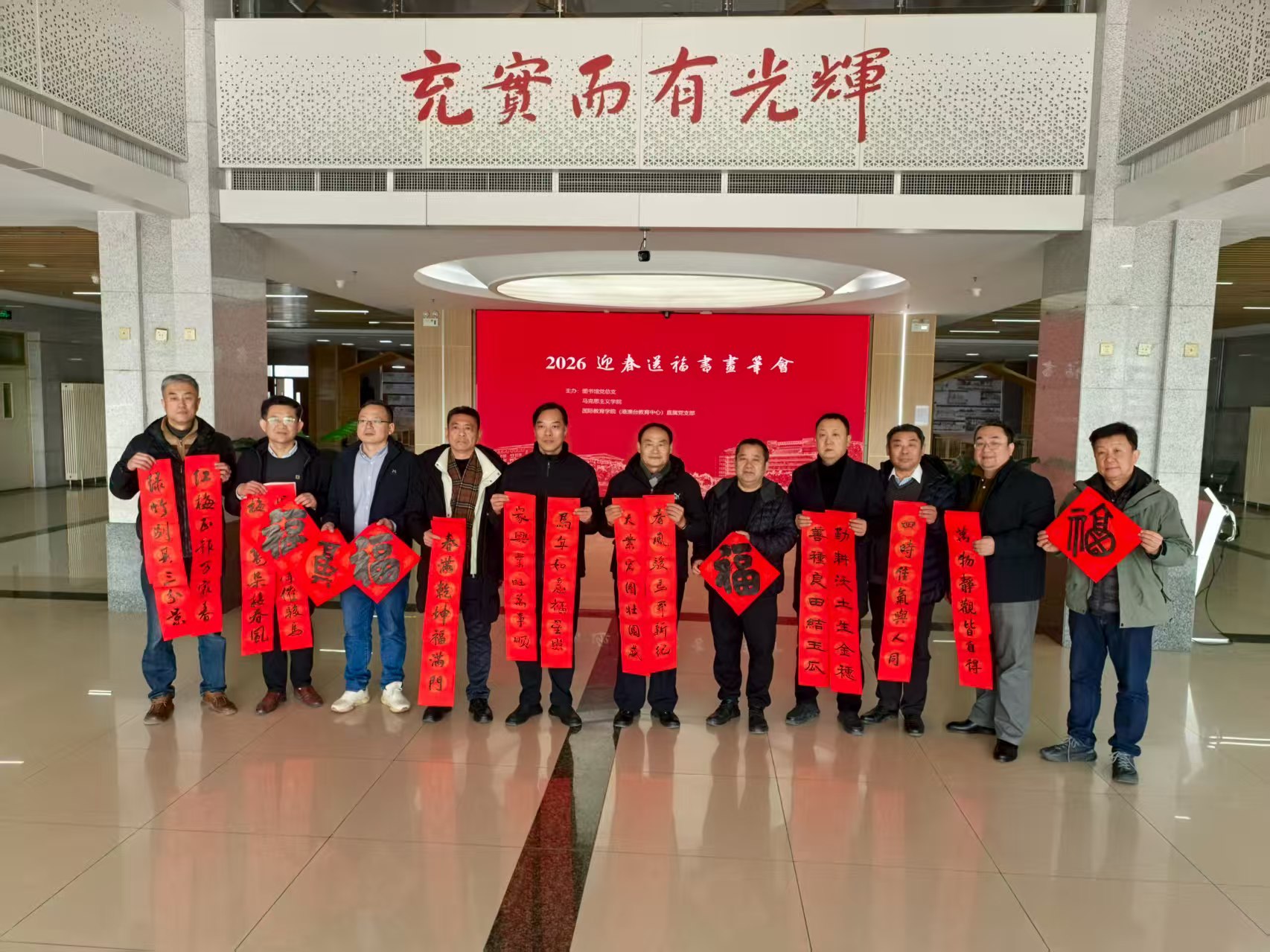 党委和国际教育道具自慰(港澳台教育中心)直属党支部联合主办的2026新春送福笔会在图书馆金石书画中心成功举办。